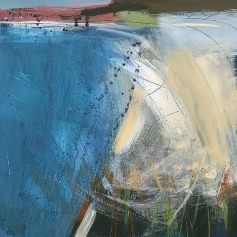 Jacky Paynter’s Pathways paintings trace routes through landscapes that have become central to her life, from the Cornish coast at St Ives to the familiar paths of Fleet Pond. Each canvas captures a place returned to time and again, where the rhythm of land and water shapes both memory and experience. Bold brushwork and layered colour heighten the contrast between the expansive shoreline and the intimate stillness of the pond, transforming these landscapes into enduring moments.